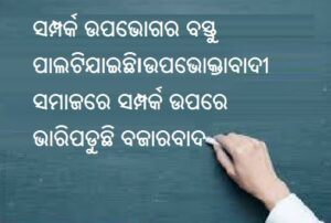 ଆଜିର ଉପଭୋକ୍ତାବାଦୀ ସମାଜରେ ସବୁ ବସ୍ତୁ ବିକ୍ରୀ ହୋଇପାରିବ ଓ ବିକ୍ରୀ ହୋଇପାରୁଛି । କୁହାଯାଏ ଯେ ବଜାରର କୌଣସି ନିଜସ୍ୱ ନିୟମ ନାହିଁ । ଏଣୁ ସବୁ ଜିନିଷ ଏପରିକି ମଣିଷର ଭାବନା ଏବଂ ସମ୍ପର୍କ ମଧ୍ୟ ଉପଭୋଗର ବସ୍ତୁ ପାଲଟିଯାଇଛି । ଇଛା ହେଲେ ମୂଲ୍ୟ ନିର୍ଦ୍ଧାରଣ କରି କ୍ରୟ ବା ବିକ୍ରୟ କରାଯାଇପାରେ । ଦୁନିଆ ଏବେ ଦୃତଗତିରେ ବଦଳୁଛି ଏଣୁ ପରିବାର, ଶିକ୍ଷା, ରାଜନୀତି ଏବଂ ଅର୍ଥବ୍ୟବସ୍ଥା ମଧ୍ୟ ସମୟ ଅନୁସାରେ କଡଲେଉଟାଇବାରେ ଲାଗିଛି । ଦୃତଗତିରେ ପରିବର୍ତିତ ହେଉଥିବା ସମୟ ମଣିଷର ବୟସର ସବୁ ଅବସ୍ଥାକୁ ପ୍ରଭାବିତ କରୁଛି । ବାଲ୍ୟାବସ୍ଥା କଥାକୁ ଦେଖିଲେ ସ୍ପଷ୍ଟ ଯେ ସେ ଅବସ୍ଥା କୁଆଡେ ହଜିଯାଇଛି ଅଥବା ଆଜିର ସମୟରେ ସେଭଳି ଅବସ୍ଥା କିଛି ନାହିଁ । ପିଲାମାନେ ସିଧାସଳଖ କୈଶରାବସ୍ଥା ବା ଯୁବାବସ୍ଥାରେ ପାଦ ରଖିଲେଣି । ଏବେ ପିଲାମାନେ ଆଉ ଖେଳନାରେ ଖେଲୁନାହାଁନ୍ତି, ମୋବାଇଲ ବା କମ୍ପ୍ୟୁଟରରେ ଖେଲୁଛନ୍ତି । ଏଣୁ ସେମାନେ ବାସ୍ତବିକତାଭାବେ ସମାଜର ଅଙ୍ଗ ହୋଇପାରୁନାହାନ୍ତି । ଏମାନେ କେଉଁ ଅଦୃଶ୍ୟ ଦୁନିଆକୁ ଚାଲିଯାଉଛନ୍ତି । କମ୍ପ୍ୟୁଟର ଗେମ (ଖେଳ)ର ଦୁନିଆ ପିଲାମାନଙ୍କ ବ୍ୟକ୍ତିତ୍ୱକୁ ପୁରାପୁରି ବଦଳାଇ ଦେଇଛି । ସଂଖ୍ୟାଧିକ କିଶୋର କମ୍ପ୍ୟୁଟରଗେମ, ସୋସିଆଲ ମିଡିଆ ଆଦିରେ ଅଧିକ ସମୟ ବିତାଇବାରେ ଲାଗିଛନ୍ତି । ପରିବାର ଏବଂ ସମାଜ ଉପରେ ଏବେ ଏହି ବଜାରବାଦ ଏବଂ ଉପଭୋକ୍ତାବାଦ ଭାରି ପଡିବାରେ ଲାଗିଛି । ବଜାରର ଏକମାତ୍ର ଲକ୍ଷ ହେଉଛି ଅଧିକରୁ ଅଧିକ ଲାଭ କମାଇବା । ଏଥିପାଇଁ ମନୁଷ୍ୟର ଭାବନା, ସମ୍ପର୍କ, ସୁଖ-ଦୁଃଖ ଓ ଖୁସି ସବୁର ବ୍ୟବସାୟ ହେଉଛି । ନିକଟରେ ଇଂଟରନେଟରେ ପ୍ରସାରିତ ଏକ ଖବର ଅନୁସାରେ ଜାପାନର ଜଣେ ଧନୀବ୍ୟକ୍ତି ମଣିଷର ଭାବନାକୁ ବୁଝିବା ଏବଂ ମଣିଷର ଏକୁଟିଆପଣକୁ ଦୂରକରିବା ପାଇଁ ନିର୍ମାଣ କରାଯାଉଥିବା ଏକ ରୋବର୍ଟ କମ୍ପାନୀରେ ପୁନଃନିବେଶ କରିଛନ୍ତି । ଏହି ଯେଉଁ ରୋବର୍ଟ ନିର୍ମାଣ କରାଯାଉଛି ତାର ନାମ ହେଉଛି ଲୋବର୍ଟ । ଜାପାନର ଧନୀକ ବ୍ୟକ୍ତି ଜଣକଙ୍କ ମତରେ ରୋବର୍ଟ ମଣିଷର ସବୁ ଭାବନାକୁ ବୁଝିପାରେ ଏବଂ ମଣିଷକୁ ସୁସ୍ଥ ଏବଂ ସକ୍ଷମ ରଖିପାରେ । ତାଙ୍କ ମତରେ କୋରନା ସମୟରେ ଏହିଭଳି ରୋବର୍ଟ ରୋଗୀମାନଙ୍କ କ୍ଷେତ୍ରରେ ସକରାତ୍ମକ ଭୂମିକା ନିର୍ବାହ କରିଥିଲା । ଏକଥା ମଧ୍ୟ ସତ୍ୟ ଯେ ଯେତେବେଳେ ସମାଜରେ ମଣିଷର ଭୂମିକା ଉପରେ ପ୍ରଶ୍ନ ଉଠିଥାଏ ଅଥବା ମଣିଷ ନିଜର ଭୂମିକା ଠାରୁ ଦୂରେଇ ଯାଇଥାଏ ସେତେବେଳେ ମେସିନର ସହାୟତାର ଆବଶ୍ୟକତା ପଡିଥାଏ । ଏବେ ଲାଭର ବଜାର ବ୍ୟାପକ ହେବାରେ ଲାଗିଛି । ବ୍ୟକ୍ତି ବା ମଣିଷର ଅନ୍ତରଙ୍ଗ ମୁହୁର୍ତ ମଧ୍ୟ ବଜାରର ଅଂଶ ପାଲଟିଯିବାକୁ ବସିଲାଣି ଯାହା କେବଳ ତାର ପରିବାର ମଧ୍ୟରେ ସିମୀତ ଥିଲା । ସିନେମା ଏବଂ ଧାରାବାହିକ ଗୁଡ଼ିକ ମଧ୍ୟ ବ୍ୟକ୍ତିଗତ ଜୀବନକୁ ବଜାର ପର୍ଯ୍ୟନ୍ତ ପହଂଚାଇବାରେ ବଡ ଭୂମିକା ନିର୍ବାହ କରିଥାନ୍ତି । ଏବେ ବିବାହ ପୂର୍ବରୁ ପତି-ପତ୍ନୀ ଦାମୀ ଶାଢୀ ଓ ଗହଣା ପିନ୍ଧି ଫଟୋ (ଫିଲ୍ମ) ଉଠାଉଛନ୍ତି ଏବଂ ଯେପରି କାର୍ଯ୍ୟକ୍ରମ ସବୁ କରାଯାଉଛି ତାର ବାସ୍ତବିକ ଦୁନିଆ ସହ ସମ୍ପର୍କ ନଥିବା ଭଳି ଜଣାପଡେ । ଆଜିକାଲି ମାତୃତ୍ୱ (ଗର୍ଭଧାରଣ) ଅବସ୍ଥାରେ ସ୍ମୃତିକୁ ସାଇତି ରଖିବା ପାଇଁ ମ୍ୟାଟ୍ରିନିଟି ଫଟୋଶୁଟ କରାଯାଉଛି । ବସ୍ତୁ ଏବଂ ସେବାକୁ ବିକ୍ରୀ କରୁକରୁ ଭାବନା ମଧ୍ୟ ବଜାରକୁ ବି
