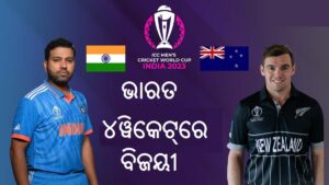 ଧର୍ମଶାଳା ୨୨/୧୦: ଚଳିତ ବିଶ୍ୱକପ୍‌ରେ ଦୁଇ ଅପରାଜେୟ ଦଳ ଥିବା ଭାରତ- ନ୍ୟୁଜିଲ୍ୟାଣ୍ଡ ମୁକାବିଲାରେ ଭାରତର ଜିତାପଟ ହୋଇଛି । ଏପର୍ଯ୍ୟନ୍ତ ଅପରାଜେୟ ରହିଥିବା ନ୍ୟୁଜିଲ୍ୟାଣ୍ଡକୁ ରବିବାର ଖେଳାଯାଇଥିବା ମୁକାବିଲାରେ ପରାଜିତ କରି ଟିମ୍‌ଇଣ୍ଡିଆ ଚଳିତ ବିଶ୍ୱକପ୍‌ରେ ବିଜୟ ଧାରା ଜାରି ରଖିଛି । ।ଜି ମ୍ୟାଚରେ ଟିମ୍‌ଇଣ୍ଡଆ ୪ ୱିକେଟ୍‌ରେ ବିଜୟୀ ହୋଇଛି । ଟିମ୍‌ଇଣ୍ଡିଆର ଏହି ବିଜୟର କର୍ଣ୍ଣଧାର ସାଜିଥିଲେ ରନ୍‌ମେସିନ୍ ବିରାଟ କୋହଲି । ଦୁର୍ଭାଗ୍ୟବଶତଃ ବିରାଟ ଶତକ ପୂରଣ କରିପାରିନଥିଲେ ମଧ୍ୟ ଦଳକୁ ବିଜୟଦ୍ୱାର ନିକଟରେ ପହଁଚାଇଥିଲେ । ବିରାଟ ୧୦୪ ଟି ବଲ୍‌ର ସମ୍ମୁଖୀନ ହୋଇ ୯୫ ସ୍କୋରରେ ହେନ୍‌ରୀଙ୍କ ବୋଲିଂରେ କ୍ୟାଚ୍ ଆଉଟ୍ ହୋଇଥିଲେ । ବିରାଟଙ୍କ ବ୍ୟତୀତ ହିଟ୍‌ମ୍ୟାନ୍ ରୋହିତ ୪୬, ଶୁଭମନ୍ ଗିଲ୍ ୨୬, ଶ୍ରେୟାସ ଆୟାର ୩୩, ଲୋକେଶ ରାହୁଲ ୨୭ ରନ୍ କରି ପ୍ୟାଭିଲିୟନ୍ ଫେରିଥିଲେ । ଚଳିତ ବିଶ୍ୱକପ୍‌ରେ ପ୍ରଥମଥର ସୁଯୋଗ ପାଇଥିବା ସୂର୍ଯ୍ୟକୁମାର ଯାଦବ ୨ ରନ୍ କରି ରନ୍ ଆଉଟ୍ ହୋଇଥିଲେ । ରବୀନ୍ଦ୍ର ଜାଡେଜା ଅପରାଜିତ ୩୯ ରନ୍‌ର ପାଳି ଖେଳିଥିଲେ । ନ୍ୟୁଜିଲ୍ୟାଣ୍ଡ ପକ୍ଷରୁ ଫର୍ଗୁସନ୍ ସଫଳ ବୋଲର ସାବ୍ୟସ୍ତ ହୋଇ ୨ଟି ସଫଳତା ପାଇଥିଲେ । ବୋଲ୍ଡ, ହେନ୍‌ରୀ ଓ ସାଂଟନରଙ୍କୁ ଗୋଟିଏ ଲେଖାଏ ସଫଳତା ମିଳିଥିଲା । ଏହା ପୂର୍ବରୁ ଟସ୍ ହାରି ପ୍ରଥମେ ବ୍ୟାଟିଂ କରିଥିବା ନ୍ୟୁଜିଲ୍ୟାଣ୍ଡ ଡାରିଲ୍ ମିଚେଲ୍‌ଙ୍କ ଶତକ ଓ ରଚିନ ରବୀନ୍ଦ୍ରଙ୍କ ଅର୍ଦ୍ଧଶତକ ବଳରେ ୨୭୩ ସ୍କୋରରେ ଶେଷ ବଲରେ ଅଲଆଉଟ୍ ହୋଇଥିଲା । ନ୍ୟୁଜିଲାଣ୍ଡ ପକ୍ଷରୁ ଡିରେଲ ମିଚେଲ୍ ୧୩୦ ରନର ଦମଦାର ଇନିଂସ ଖେଳିଛନ୍ତି । ରଚିନ ରବୀନ୍ଦ୍ର ୭୫ ରନର ଉଲ୍ଲେଖନୀୟଯାଗଦାନ ଦେଇଛନ୍ତି । ଭାରତ ପକ୍ଷରୁ ସଫଳ ବୋଲର ଭାବେ ଶାମି ୫ଟି ୱିକେଟ୍ ନେଇ ଚଳିତ ବିଶ୍ୱକପରେ ନିଜର ପ୍ରଥମ ମ୍ୟାଚ୍‌ରେ ଚମକିଛନ୍ତି । ଶାମିଙ୍କ ଘାତକ ବୋଲିଂ ଯୋଗୁଁ ଶେଷ ୧୦ ଓଭରରେ ମାତ୍ର ୫୪ ରନ କରି ନ୍ୟୁଜିଲାଣ୍ଡ ବଡ଼ ସ୍କୋର କରିବାରେ ବିଫଳ ହୋଇଛି । ଭାରତ ପକ୍ଷରୁ ମହମ୍ମଦ ଶାମି ସଫଳ ବୋଲର ଭାବେ ୧୦ ଓଭରରେ ୫୪ ରନ ଦେଇ ୫ଟି ୱିକେଟ୍ ସଫଳତା ହାସଲ କରିଛନ୍ତି । ଯଶପ୍ରୀତ ବୁମରା ଓ ମହମ୍ମଦ ସିରାଜ ପ୍ରତ୍ୟେକ ୧୦ ଓଭର କରି ୪୫-୪୫ ରନ ଦେଇ ଗୋଟିଏ ଲେଖାଏଁ ୱିକେଟ୍ ନେଇଛନ୍ତି ।