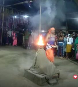 କେନ୍ଦ୍ରାପଡାର ପଟ୍ଟାମୁଣ୍ଡାଇର ନିଳକଣ୍ଠପୁରରେ ନବମୀ ଦୃର୍ଗାପୂଜାରେ ଭକ୍ତମାନେ ମାଙ୍କୁ ଏକ ନିଆରା ଶୈଳୀରେ ଝୁଣା ଅର୍ପଣ କରିଥିବା ଦେଖିବାକୁ ମିଳିଥିଲା । ନବମୀରେ ଦିନସାରା ନିର୍ଜଳ ଉପବାସ କରିଥିବା ଭକ୍ତ ବ୍ରାହ୍ମଣଙ୍କ ଠାରୁ ମନ୍ତ୍ରଗ୍ରହଣ କରି ନିଜକୁ ସର୍ମପିତ କରନ୍ତି ମା ଦୃର୍ଗାଙ୍କୁ । ମାନସିକରେ ଥିବା ଭକ୍ତ ମାଙ୍କ ଛାମୁରେ ଥିବା ଏକ ପିଢ଼ ଉପରେ ପଦ୍ମାଆସନରେ ବସିବା ପରେ ପୁଜାରି ତାଙ୍କ ଉପରେ ଏକ ଓଦା ଚାଦର ଘୋଡାଇ ଦିଅନ୍ତି। ମୁଣ୍ଡ ଉପରେ ମେଞ୍ଚାଇ କାଦୁଅ ରଖି ତାହା ଉପରେ ରଖାଯାଏ ଧୂ ଧୂ ଜଳୁଥିବା ନିଆଁର ପଲମ ।