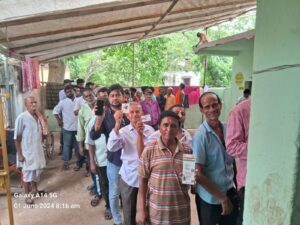 ଗଳୁଗୁଳିକୁ ଭୁକ୍ଷେପ ନ କରି ଲୋକେ ଭୋଟ ଦାନରେ ସାମଲି,  ବିଳମ୍ବ ସତ୍ୱେ ଶାନ୍ତିଶୁଙ୍ଖଳରେ ମତଦାନ, ନିଳକଣ୍ଠପୁର ତୋଟା ସାହି ବୁଥରେ ଗଣ୍ଡଗୋଳ