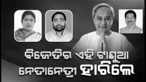 ତେବେ ମୁଖ୍ୟମନ୍ତ୍ରୀ ନବୀନ ପଟ୍ଟନାୟକ ଗତ ୨୪ ବର୍ଷ ମଧ୍ୟରେ ପ୍ରଥମ ଥର ପାଇଁ ନିର୍ବାଚନରେ ପରାଜିତ ହୋଇଛନ୍ତି । କଣ୍ଟାବାଞ୍ଜି ନିର୍ବାଚନ ମଣ୍ଡଳୀରୁ ସେ ହାରି ଯାଇଛନ୍ତି। ଭାଜପା ପ୍ରାର୍ଥୀ ଲକ୍ଷ୍ମଣ ବାଗଙ୍କ ତାଙ୍କୁ ପରାସ୍ତ କରିଛନ୍ତି। ଚଳିତ ନିର୍ବାଚନରେ ମୁଖ୍ୟମନ୍ତ୍ରୀ ହିଞ୍ଜିଳି ସମେତ କଣ୍ଟାବାଞ୍ଜିରୁ ପ୍ରାର୍ଥୀ ହୋଇଥିଲେ। ଉଭୟ ଆସନରେ ବିଜୟୀ ହେବେ ବୋଲି ଆଶା କରାଯାଉଥିଲା।ହେଲେ କଣ୍ଟାବାଞ୍ଜିରୁ ଭାଜପା ପ୍ରାର୍ଥୀ ତାଙ୍କୁ କଡା ଟକ୍କର ଦେଲେ । ବାଗ୍‌ ୧୬,୩୨୧ ଖଣ୍ଡ ଭୋଟରେ ମୁଖ୍ୟମନ୍ତ୍ରୀଙ୍କୁ ପରାସ୍ତ କରିଛନ୍ତି। ବିଜେଡିର ଜୋରଦାର ପ୍ରଚାର ସତ୍ତ୍ୱେ ଓଡ଼ିଶାରେ ଆଶାତୀତ ସଫଳତା ପାଇପାରିନାହିଁ ଦଳ । ଲୋକେ ବିଜେଡି ବିପକ୍ଷରେ ଯାଇଛନ୍ତି। ଭଜପାକୁ ଭରସା କରିଛନ୍ତି ଭୋଟର। ତେବେ ବିଜେଡିର ଟାଣୁଆ ନେତା/ନେତ୍ରୀ ପରାଜୟର ସ୍ୱାଦ ଚାଖିଛନ୍ତି। ସେଥିରୁ ଅନୁଗୁଳରେ ପରାଜୟର ସ୍ୱାଦ ଚାଖିଛନ୍ତି ବିଜେଡି ନେତା ରଜନୀକାନ୍ତ ସିଂହଙ୍କ ପତ୍ନୀ ସଂଯୁକ୍ତା ସିଂହ। ସେ ବିଜେପି ପ୍ରାର୍ଥୀ ପ୍ରତାପ ଚନ୍ଦ୍ର ପ୍ରଧାନଙ୍କଠାରୁ ୧୭୪୩୩ ଭୋଟରେ ପରାସ୍ତ ହୋଇଛନ୍ତି। ଅତାବିରାରେ ଏଥର ପରାଜୟର ସ୍ୱାଦ ଚାଖିଛନ୍ତି ସ୍ନେହାଙ୍ଗିନୀ ଛୁରିଆ। ସେ ବିଜେପି ପ୍ରାର୍ଥୀ ନିହାର ରଞ୍ଜନ ମହାନନ୍ଦଙ୍କଠାରୁ ପରାସ୍ତ ହୋଇଛନ୍ତି।ବାରବାଟୀ-କଟକରେ ପରାଜୟର ସ୍ୱାଦ ଚାଖିଛନ୍ତି ପ୍ରକାଶ ବେହେରା। ବଡ଼ଚଣାରେ ହାରିଯାଇଛନ୍ତି ବର୍ଷା ପ୍ରିୟଦର୍ଶିନୀ। ବଡମ୍ବାରୁ ବରିଷ୍ଠ ବିଜେଡି ନେତା ଦେବୀ ପ୍ରସାଦ ମିଶ୍ର, ବରଗଡ଼ରୁ ଦେବେଶ ଆଚାର୍ଯ୍ୟ, ବ୍ରହ୍ମପୁରରୁ ରମେଶ ଚ୍ୟାଉପଟ୍ଟନାୟକ, ଭଦ୍ରକରୁ ପ୍ରଫୁଲ୍ଲ ସାମଲ, ଭଞ୍ଜନଗରରୁ ବିକ୍ରମ କେଶରୀ ଆରୁଖ, ଭଟଲିରୁ ସୁଶାନ୍ତ ସିଂ, ବିଜେପୁରରୁ ରିତା ସାହୁ, ବୌଦ୍ଧରୁ ପ୍ରଦୀପ ଅମାତ, ବ୍ରହ୍ମଗିରିରୁ ଉମାକାନ୍ତ ସାମନ୍ତରାୟ, ବ୍ରଜରାଜନଗରରୁ ଅଳକା ମହାନ୍ତି, ଧର୍ମଗଡରୁ ପୁଷ୍ପେନ୍ଦ୍ର ସିଂହ ଦେଓ, ଧର୍ମଶାଳାରୁ ପ୍ରଣବ ପ୍ରକାଶ ବଳବନ୍ତରାୟ, ଢେଙ୍କାନାଳରୁ ସୁଧୀର ସାମଲ, ଏକାମ୍ରରୁ ଅଶୋକ ପଣ୍ଡା, ଜି.ଉଦୟଗିରିରୁ ଉପବାଚସ୍ପତି ସାଲୁଗା ପ୍ରଧାନ, ଗୋପାଳପୁରରୁ ବିକ୍ରମ ପଣ୍ଡା, ହିନ୍ଦୋଳରୁ ମହେଶ ସାହୁ, ଜଗତସିଂହପୁରରୁ ପ୍ରଶାନ୍ତ ମୁଦୁଲି, ଝାରସୁଗୁଡ଼ାରୁ ଦୀପାଳି ଦାସ, ସତ୍ୟବାଦୀରୁ ସଞ୍ଜୟ ଦାସବର୍ମା, କବିସୂର୍ଯ୍ୟନଗରରୁ ଲତିକା ପ୍ରଧାନ, କାମାକ୍ଷାନଗରରୁ ପ୍ରଫୁଲ୍ଲ ମଲ୍ଲିକ, କଣ୍ଟାବାଞ୍ଜିରୁ ନବୀନ ପଟ୍ଟନାୟକ, କରଞ୍ଜିଆରୁ ବାସନ୍ତୀ ହେମ୍ବ୍ରମ, ଖୋର୍ଦ୍ଧାରୁ ରାଜେନ୍ଦ୍ର ସାହୁ, କୋରେଇରୁ ସନ୍ଧ୍ୟାରାଣୀ ଦାସ, ମାହାଙ୍ଗାରୁ ଅଙ୍କିତ ପ୍ରତାପ ଜେନା, ମହାକାଳପଡ଼ାରୁ ଅତନୁ ସବ୍ୟସାଚୀ, ନିଆଳିରୁ ପ୍ରମୋଦ ମଲ୍ଲିକ, ପରଜଙ୍ଗରୁ ନୃସିଂହ ସାହୁ, ପିପିଲରୁ ରୁଦ୍ର ମହାରଥୀ, ପୋଲସରାରୁ ଶ୍ରୀକାନ୍ତ ସାହୁ, ସମ୍ବଲପୁରରୁ ରୋହିତ ପୂଜାରୀ, ସୁକିନ୍ଦାରୁ ପ୍ରୀତି ରଞ୍ଜନ ଘଡେଇ, ଟିଟିଲାଗଡ଼ରୁ ଟୁକୁନି ସାହୁ ପ୍ରମୁଖ ପରାସ୍ତ ହୋଇଛନ୍ତି।