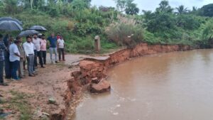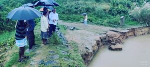 ପଟ୍ଟାମୁଣ୍ଡାଇ ୨୫/୯ -କେନ୍ଦ୍ରାପଡା ଜିଲା ପଟ୍ଟାମୁଣ୍ଡାଇ ଜଳସେଚନ ଉପଖଣ୍ଡ ଅଳଭା-୨ ନିମପୁର ଦେଇ ପ୍ରଭାବିତ ହେଉଥିବା ବ୍ରାହ୍ମଣୀ ନଦୀର ପୋଖରୀସାହି ନିକଟରେ ୬୦ ଫୁଟରୁ ଅଧିକ ଲମ୍ବର ମାଟି ଅତଡା ଧସି ନଦୀ ଗର୍ଭରେ ମିଶି ଯାଇଛି । ଫଳରେ ଆଖପାଖ ଅଂଚଳ ଲୋକେ ଆତଙ୍କିତ ଅବସ୍ଥାରେ ରହିଛନ୍ତି । ନଦୀ ବନ୍ଧଟି ଧସିବା ଯୋଗୁଁ ସ୍ଥାନୀୟ ଅଂଚଳବାସୀଙ୍କ ମଧ୍ୟରେ ତୀବ୍ର ଅସନ୍ତୋଷ ପ୍ରକାଶ ପାଇଛି । ଯଦି ନଦୀରେ ଜଳ ସ୍ତର ଅଧିକ ବଢେ ଏଠାରେ ଘାଇ ହେବାର ଆଶଙ୍କା ରହିଛି ବୋଲି ସ୍ଥାନୀୟ ଲୋକେ ମତ ପ୍ରକାଶ କରିଛନ୍ତି । ତେବେ ଜଳସଂପଦ ବିଭାଗ ଅଧିକ୍ଷଣ ଯନ୍ତ୍ରୀଙ୍କ ସହିତ ଅନ୍ୟ ଅଧିକାରୀ ଏହା ଉପରେ ନଜର ରଖିବା ସହିତ ବାଲିବସ୍ତା ପକାଇବା ପାଇଁ ବ୍ୟାବସ୍ଥା କରିଛନ୍ତି ।
