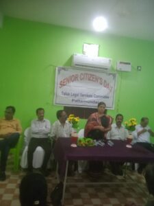 ପଟ୍ଟାମୁଣ୍ଡାଇ ବରିଷ୍ଠ ନାଗରିକ ଚିତବିନୋଦନ ଗୃହ ପରିସରରେ ମଂଚ ସଭାପତି ପ୍ରଫେସର ଅନିରୁଦ୍ଧ ରାଉଳଙ୍କ ସଭାପତିତ୍ୱରେ ଅନୁଷ୍ଠିତ ସଭାରେ ପ୍ରାରମ୍ଭ ଅଧିବେଶନରେ ପଟ୍ଟାମୁଣ୍ଡାଇ ତାଲୁକ ଆଇନ ସେବା ସମିତି ଅଧ୍ୟକ୍ଷ ତଥା ସିନିୟର ସିଭିଲ ଜଜ୍ ସୁଶ୍ରୀ ସଙ୍ଗୀତା ମଲ୍ଲିକ ଯୋଗଦେଇ ବରିଷ୍ଠ ନାଗରିକ ମାନଙ୍କର ବିଭିନ୍ନ କ୍ଷେତ୍ରରେ ଅବଦାନ, ଉପଲବଧୀ, ସମାଜପ୍ରତି ସେବା ଓ ସମର୍ପଣ ଭାବକୁ ସ୍ୱୀକାର କରିବା ଓ କୃତଜ୍ଞତା ଜ୍ଞାପନ କରିବା ଏହି ଦିବସର ଆଭିମୁଖ୍ୟ । ବରିଷ୍ଠ ନାଗରିକ ମାନଙ୍କ ସମାଜରେ ପ୍ରତିଷ୍ଠା, ଆଇନ ସେବା, ବରିଷ୍ଠ ନାଗରିକ ଅଧିନିୟମ ୨୦୦୭ ଅନୁସାରେ ବରିଷ୍ଠ ତଥା ପିତା ମାତା ପ୍ରତିପୋଷଣ ଓ ସାହାଚର୍ଯ୍ୟ ସମ୍ପର୍କରେ ମତ ପ୍ରକାଶ କରିଥିଲେ ।