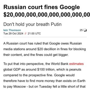 ଗୁଗୁଲ ଉପରେ ଲାଗିଲା ୨୦, ୦୦୦,୦୦୦,୦୦୦,୦୦୦,୦୦୦,୦୦୦,୦୦୦,୦୦୦,୦୦୦,୦୦୦,୦୦୦ ଡଲାରର ଜରିମାନା, ନମାନିଲେ ପ୍ରତିଦିନ ବଢିବ…