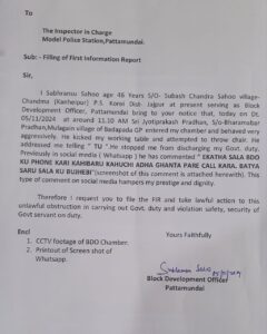 ବିଡ଼ିଓଙ୍କୁ ଦୁର୍ବ୍ୟବହାର ଥାନାରେ ଅଭିଯୋଗ,ମାମଲା ରୁଜୁ